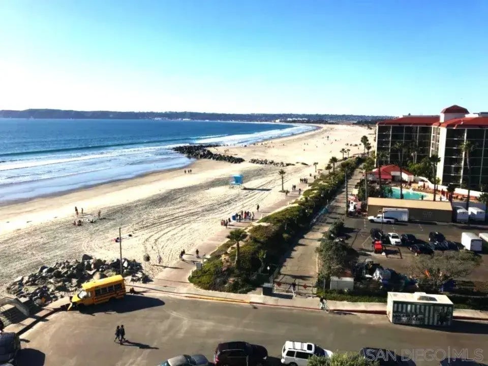 Enjoy the Best of Coronado Beach in the highly desirable La Sierra Tower! Experience sweeping views of the ocean, city and iconic Hotel Del Coronado. This charming 2-bedroom, 2-bath condo offers a split floorplan for maximum privacy. The primary bedroom has a comfy king bed and walk in closet. The guest bedroom has a plush queen bed. Relax in your living room with sweeping ocean views or take a short stroll to the historic Hotel del Coronado, local shops, cafés, and restaurants. Resort-style amenities include pools, tennis courts, a fitness center, and secure garage parking for one vehicle.Come unwind and enjoy the best of Coronado beachfront living!