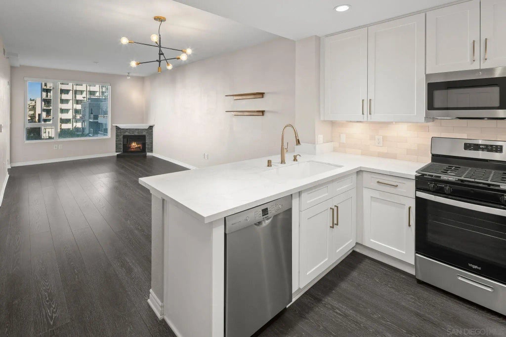 Welcome to your dream condo at La Vita Building, located in the vibrant heart of Little Italy, San Diego! This stylish 1-bedroom, 1-bathroom unit on the 5th floor offers a perfect blend of modern living and urban convenience. Step inside to discover a fully updated space featuring light and bright quartz countertops complemented by sleek white cabinets. The kitchen is equipped with all-new stainless steel appliances, ensuring a culinary experience you'll love. Enjoy the convenience of an in-unit full-sized stacked washer and dryer. Relax in the cozy living room with a charming fireplace, or retreat to the spacious bedroom boasting dual closets for ample storage. Step out onto your private balcony and take in views of the serene fountain in the courtyard, a perfect spot for morning coffee or evening relaxation. The La Vita Building amenities include a well-appointed gym, a business center, and a full-sized swimming pool and spa for your leisure. You'll also have the convenience of 1 assigned parking spot in the secure garage, complete with a handy cart for easy grocery transfers. Enjoy the vibrant lifestyle that Little Italy offers, with an array of local restaurants, cafes, bars, and events right at your doorstep, including the bustling farmers market. With easy access to the 5 freeway, Balboa Park, Seaport Village, the waterfront, and the airport, this condo is perfectly situated for both relaxation and adventure. Don’t miss your chance to rent this stunning condo in one of San Diego’s most desirable neighborhoods! Please note use of AI generated photos