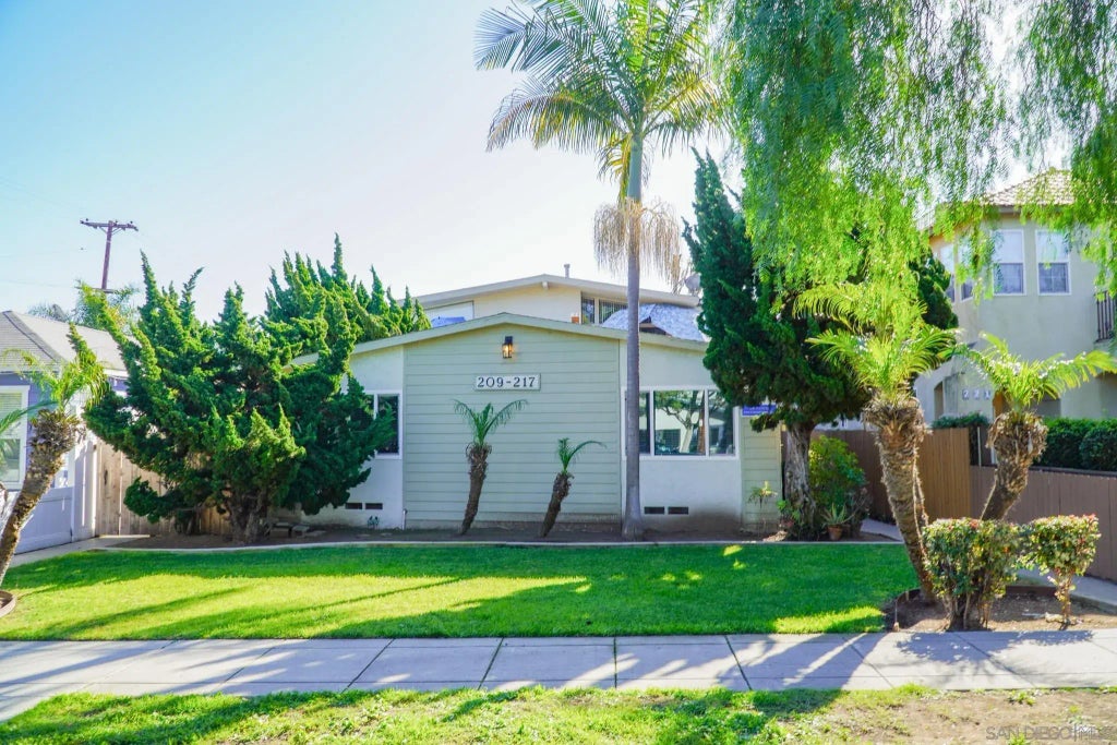 We are excited to offer a wonderful five (5) unit multifamily property at 209-17 C Avenue in Coronado for sale. Just two blocks from the Ferry Landing, this property has been well-maintained by current ownership (30+ year hold time), with two units having undergone major renovations, and the others ripe for modernization. There are three (3) 2BR/1BA units downstairs, each with a generous private enclosed patio. There are two (2) spacious 2BR/2BA units located upstairs in the back (near the alley), with a large private balconies and views to downtown San Diego. In addition to a common laundry room, a nicely manicured lawn in front and tasteful perimeter landscaping, there are 4-5 off-street parking spaces, three of which are covered, and some of which may be used as tandem (2-vehicle) spaces if smaller cars. The lower (3) 2br/1ba units are part of a single story structure that is estimated to have been built around +/-1960, while the 2nd story portion of the building featuring (2) upstairs 2br/2ba units w/ vaulted ceilings, was built around +/-1982.