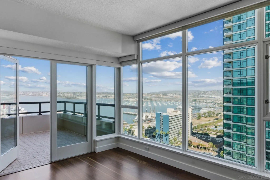 Turn-key 2 bed + den, 2 bath 23rd floor residence at The Grande South offers elevated downtown living with breathtaking panoramic views. Perched high above the city, the home captures sweeping vistas of the downtown skyline, glittering city lights, and San Diego Bay, creating a dramatic backdrop from day to night. The residence features an open-concept living space filled with natural light, expansive windows that frame the views, and a seamless flow onto the private terrace. Offered completely furnished, this is a rare opportunity for a move-in-ready luxury rental in one of Downtown San Diego’s most desirable waterfront communities. Residents of The Grande South enjoy full-service amenities, including security, concierge services, fitness center, pool and spa, and a prime location just steps from the waterfront, Seaport Village, the Gaslamp Quarter, dining, shopping, and entertainment. A perfect blend of convenience, sophistication, and iconic San Diego views.