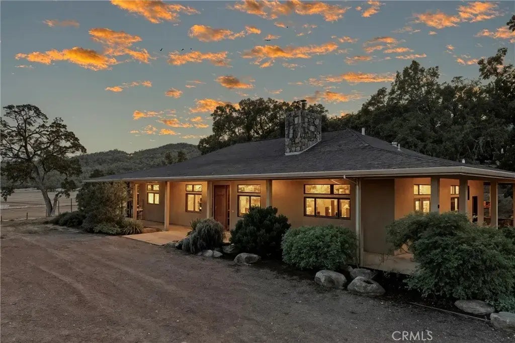 Welcome to this stunning single-level modern stucco home, perfectly situated on 23.57 acres of serene land adorned w/beautiful oak trees & breathtaking meadow views. This exceptional property offers a harmonious blend of contemporary design & natural beauty, creating an ideal sanctuary for relaxation & enjoyment. As you enter, youll be greeted by a spacious open floor plan accentuated by soaring ceilings & elegant heated vinyl plank flooring. The integrated chef's kitchen is a culinary dream, featuring a sleek European-style hood, & an impressive center island w/built-in seating, wireless charging, & a wet sink. The large bar counter, adorned w/stylish pendant lighting. Adjacent to the kitchen, the dining room provides a formal space for meals, showcasing custom lighting & stunning views through slider doors that lead to the expansive private backyard. The luxurious main bedroom suite boasts 10' ceilings, a large slider/picture window door that opens to the side yard, & an exquisite spa-style bath. Enjoy the sunny walk-in custom tile shower, dual sink vanity, & a private toilet room, along with a spacious walk-in closet. Two additional bedrooms are located on the opposite side of the home, each with slider doors. These bedrooms share a hall bath with dual sink areas & a custom tiled tub/shower. The interior laundry center is thoughtfully designed w/a washer, dryer, built-in linen closet, & sink. The property also boasts a 32-panel solar system w/two Tesla Power Wall 3s, providing home backup. Outdoor living is a highlight of this estate, featuring sprawling wrap-around pati