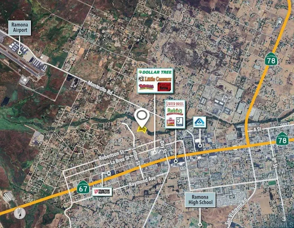 2.06 acre Santa Maria Creek mitigation parcel in the Santa Maria Valley area of Ramona. This site is located within San Diego County. The mitigation site contains 1.62 acres of annual grassland that include native and Eurasian annual grass and forb species, specifically, Ripgut Brome (Bromus diandrus), storks-bill filarees (Erodium cicutarium, E. moschatum), Shortpod Mustard (Hirschfeldia incana), Western Ragweed (Ambrosia psilostachya), Turkey Mullein (Croton setigerus) and others. The mitigation site also contains 0.44 acres of Riparian habitat. The northern portion of the site where the land meets the Santa Maria Creek supports riparian species. Cattle and horses graze the site and rely on the river for its resources. Most of the vegetation in the area has upland forbs. No sensitive plants or animals were found during the preliminary survey of the site. This creek qualifies as the California Fish & Wildlife defined wetlands and qualifies as waters of the state as defined by State Water Resources Control Board. Onsite soils consist of Fallbrook sandy loam, Bonsall sandy loam, Riverwash, and Chino Silt Loam, Saline.