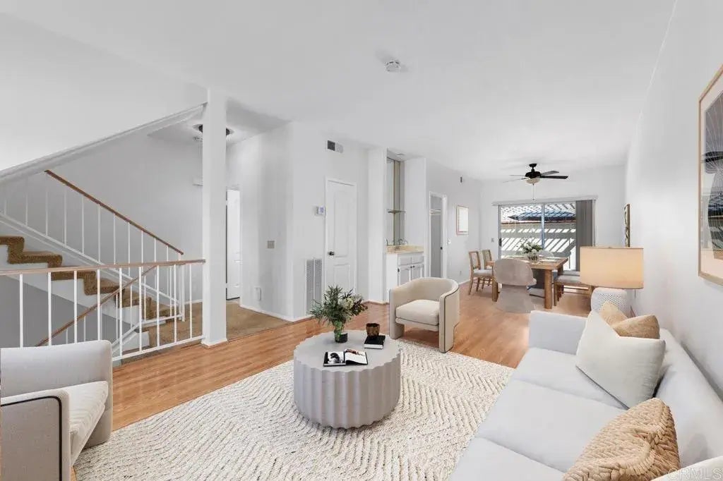 Located in the desirable Monarch Villas gated community in La Costa ~ This home places you minutes from shopping, restaurants, golf, beaches, and top rated schools. Bright and inviting with 2 bedroom, 2.5 bath townhome offers 1,308 sq. ft. of comfortable, open living space. The main level features an open concept living and dining area with a cozy fireplace, and wet-bar, great for entertaining or an extra prep-sink off the kitchen. The kitchen features a garden window looking out onto the balcony, eating area, newer flooring and newer painted cabinets. Upstairs, youll find two spacious bedrooms, each with its own ensuite bath, providing privacy and convenience. Additional highlights include newer interior paint throughout, air conditioning, laundry hook-ups in the attached 2 car garage, also with direct access into the home. The community offers a pool, spa, tennis courts, and a newer constructed tot-lot.