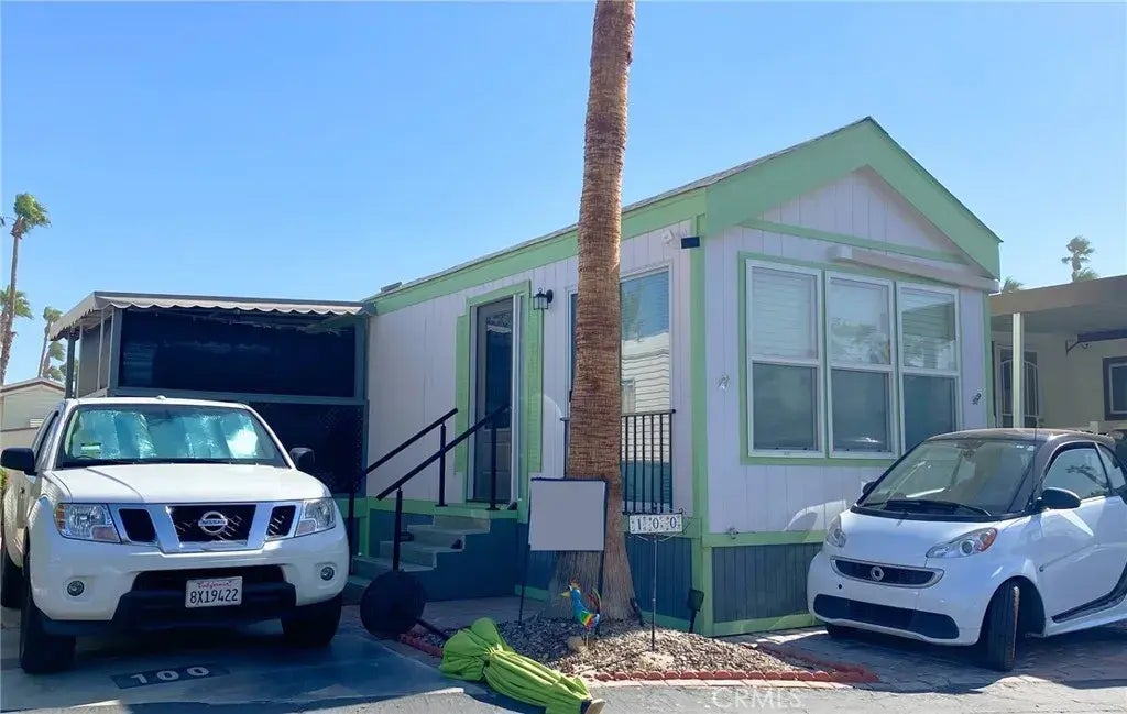 his 2005 Cavco 34' model was completely renovated in 2024 - 25 with the following all new: Floors, bathroom commode, 36" entry door, two 12,000 BTU AC mini split systems, dishwasher, refrigerator, deck and outside awning. The new kitchen boasts a beautiful wrap around quartz countertop with both induction and gas cooktops and breakfast bar seating for four! A rotisserie air fryer is also included. If you wish, there is room to install a wall oven below the cooktops. Levolor blinds throughout. Mini washer and large shed also included. Easy to maintain lot with parking for both a golf cart (or small car, see pic) and car. Highly sought after 55+ Seasonal Living "Desert Shadows RV Resort"! You Own Land! Grant Deed Lot with Water, Cable/Internet, Trash, and common area included in HOA! 1 Bedroom 1 Bath! Amazing amenities in this fabulous oasis! 2 large & well-maintained clubhouses plus 3 additional satellite clubhouses, An indoor pool with a large spa and sauna, An olympic-size lap pool, A total of 6 pools, 5 spas and 3 saunas, Sunken, lighted tennis courts, 8 Pickle-ball courts, An indoor shuffleboard pavilion, 16,000-square foot San Jacinto room with floating hardwood dance floor, and a professional stage, plus a large kitchen, A 3,000-square foot Our Gang party room and lounge with a giant fireplace and kitchen, A huge party terrace with mountain views, A fully equipped fitness center, A dance studio, Library, Billiards room, Horseshoe pits, Several laundries, restrooms and bath facilities, Card & hobby rooms with Pottery Kiln, A putting green, Organized fitness activities,