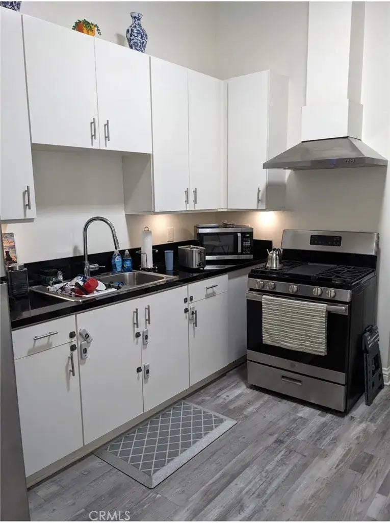 Experience the best of both worlds in this newly renovated 1-bedroom apartment on the second floor of a historic 1920s brick building. Fully updated in 2020, this 750 sq. ft. corner unit features 12-foot ceilings, large windows, skylights, and wood vinyl flooring. Youve got all the modern comforts: stainless steel appliances, a full kitchen and dining area, in-unit washer and dryer, and a full bathroom with a bathtub. Step outside and youre right in the heart of downtown Pomona. One block from the Metrolink, across from the Fox Theater and the Glass House, and steps from Thirsty Girl Coffee, a pho spot, a sports bar, a Mexican restaurant, and more. In short, this is a light-filled, vintage-meets-modern gem with all the conveniences and a killer location.