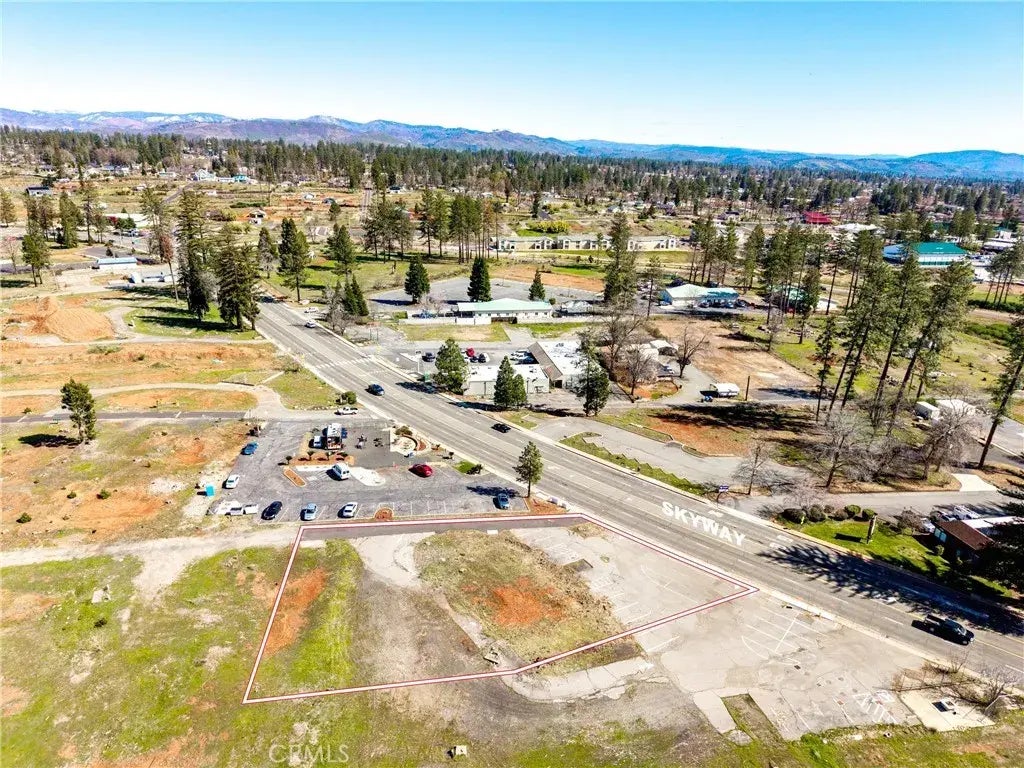 Exceptional opportunity to own a 0.55-acre commercial lot in the heart of Paradise. This property, which boasts 98 feet of Skyway frontage, is ideally located in the center of town, providing high visibility and accessibility. A structure of over 22,000 sq ft is permissible on this property. Previously the site of the successful business Juice and Java, its location guarantees consistent traffic and optimal exposure for any enterprise. The property is relatively flat, featuring two convenient access pointsone directly from Skyway and another from an owned, private access road bordering the lotmaking entry and exit seamless. This attractive property includes an engineered septic system (in good condition), an active PID water account, and a partially developed parking area that lays the groundwork for future expansion. Commercially zoned lots in such a prime, central location are rare! Whether you aim to launch a new business, relocate, or invest in a high-demand area, this versatile property presents incredible potential.