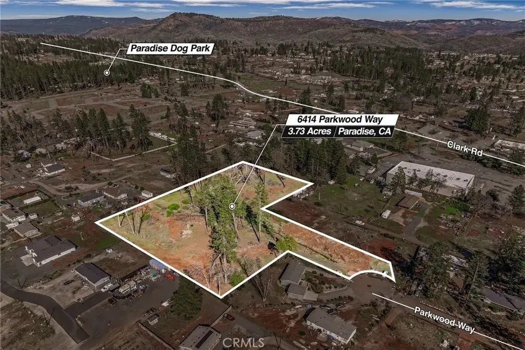 So much potential.....One of the largest parcels in town on 3.5 acres. Great end of cul de sac location and conveniently close to Clark Road and shopping. Possibilities include multi homes, family compound or one home with large garden or small orchard. Previous home was a 4 bedroom, 2 bathroom, 2006 sqft. built in 2003. Property corners surveyed in 2021 and has certification from the Town of Paradise for building. Best of all, OWNERS MAY CARRY WITH ACCEPTABLE PRICE AND TERMS.